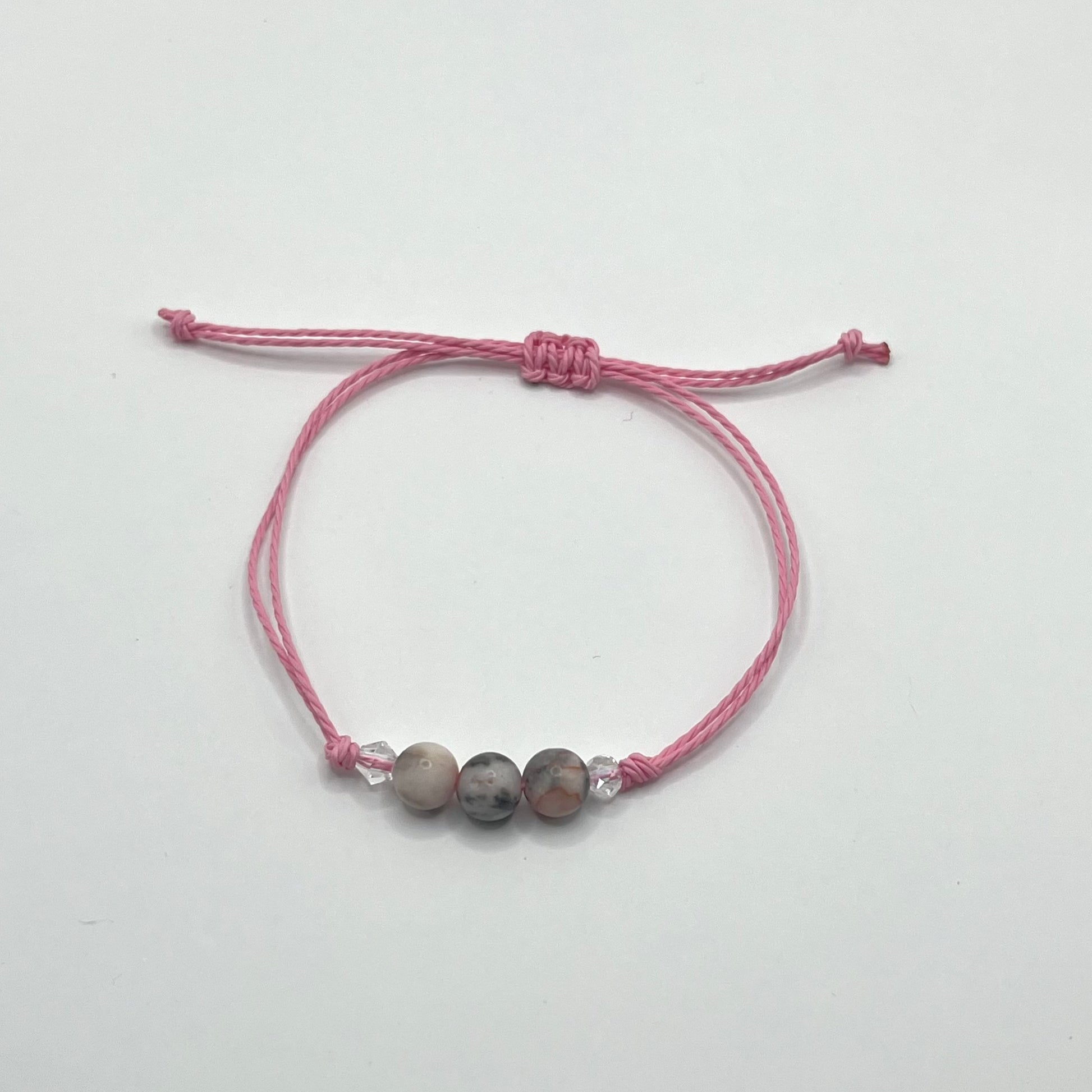 Enkle og vakre armbånd med stener av rosa jasper. Stenene er naturlige, så farge og mønster kan variere.