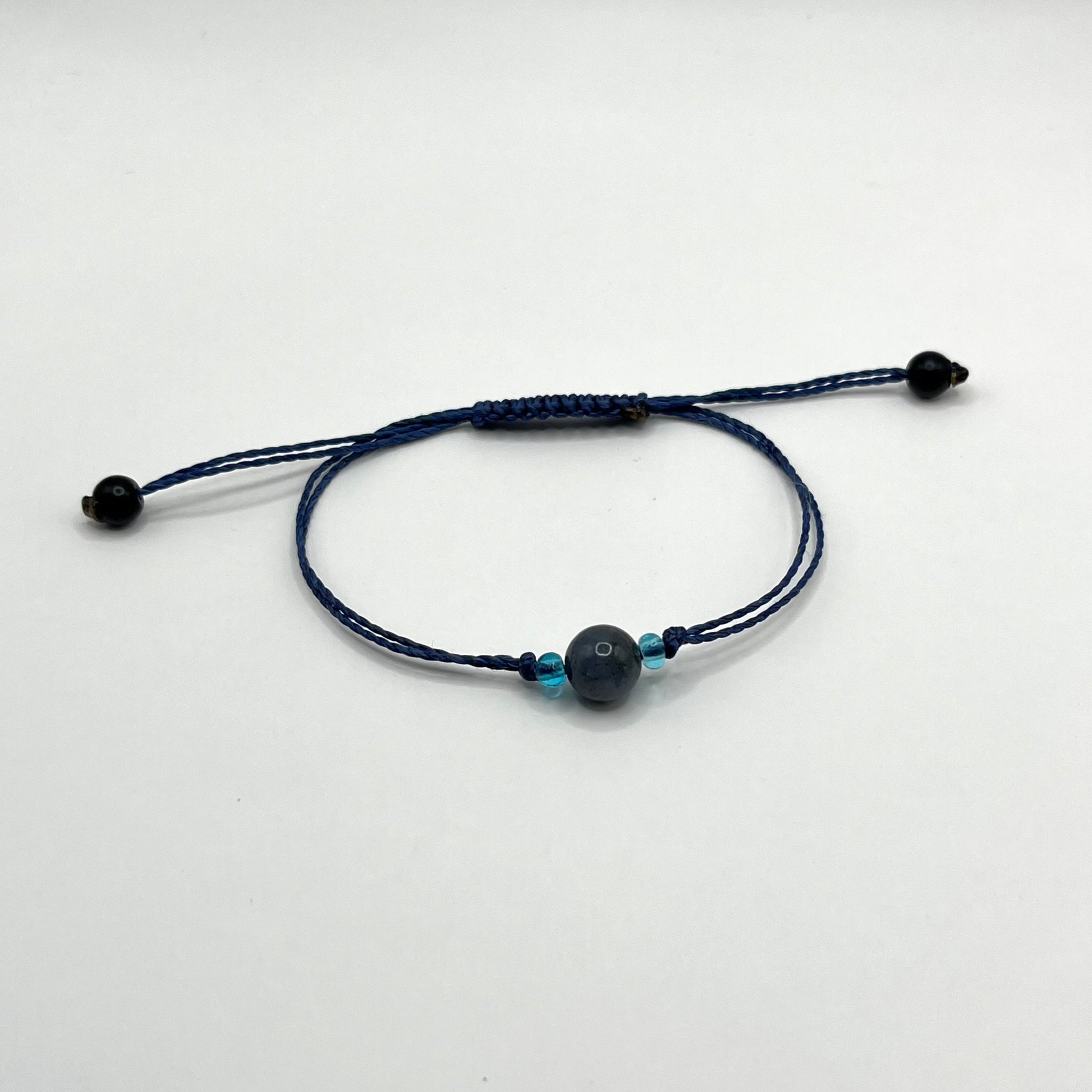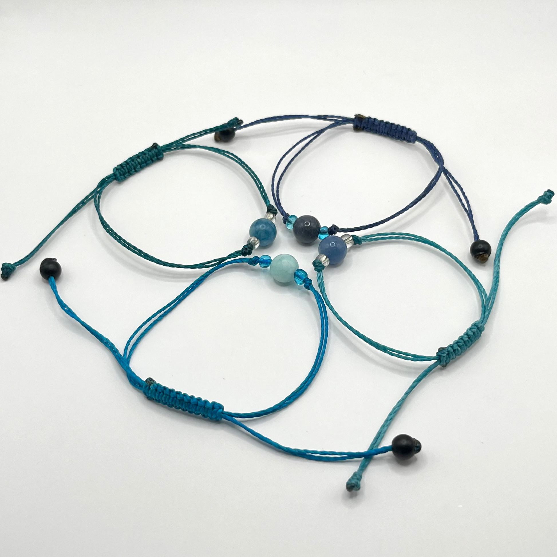 Enkle og nydelige armbånd med to små og en stor sten. Alle armbåndene er blå med matchende sten, men da dette er naturlige stener varierer fargene litt.