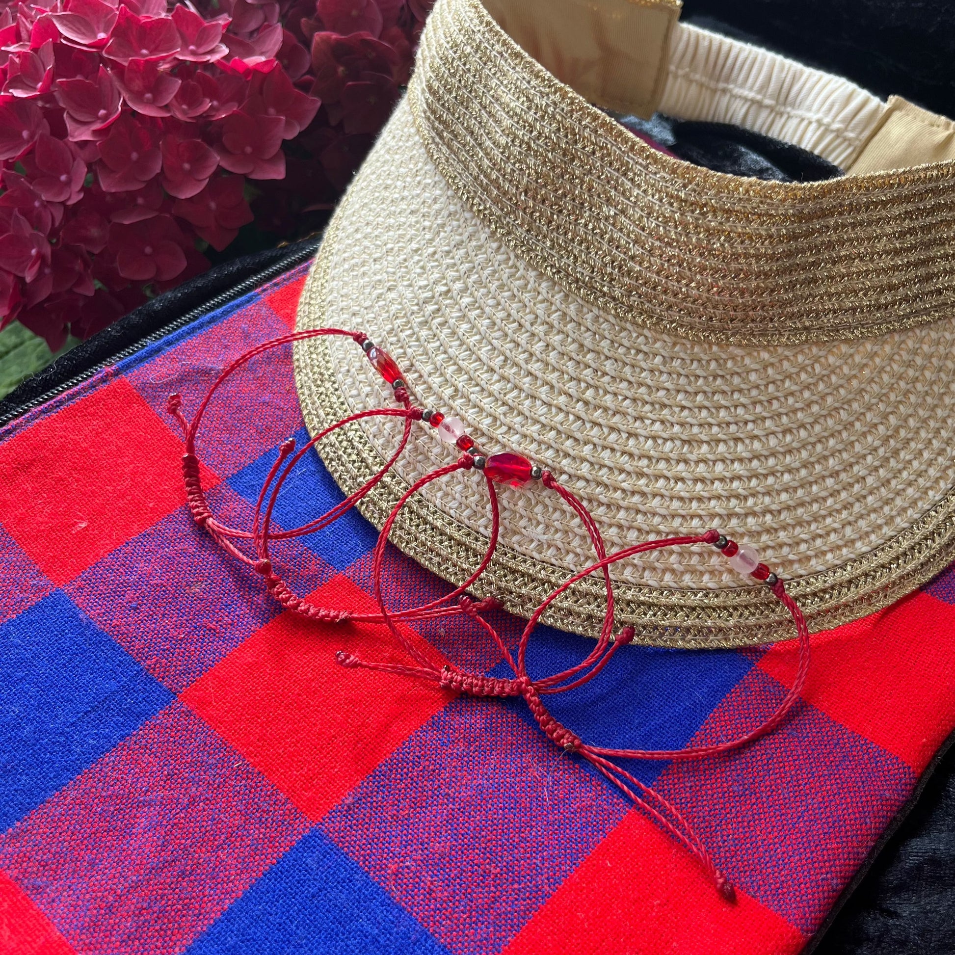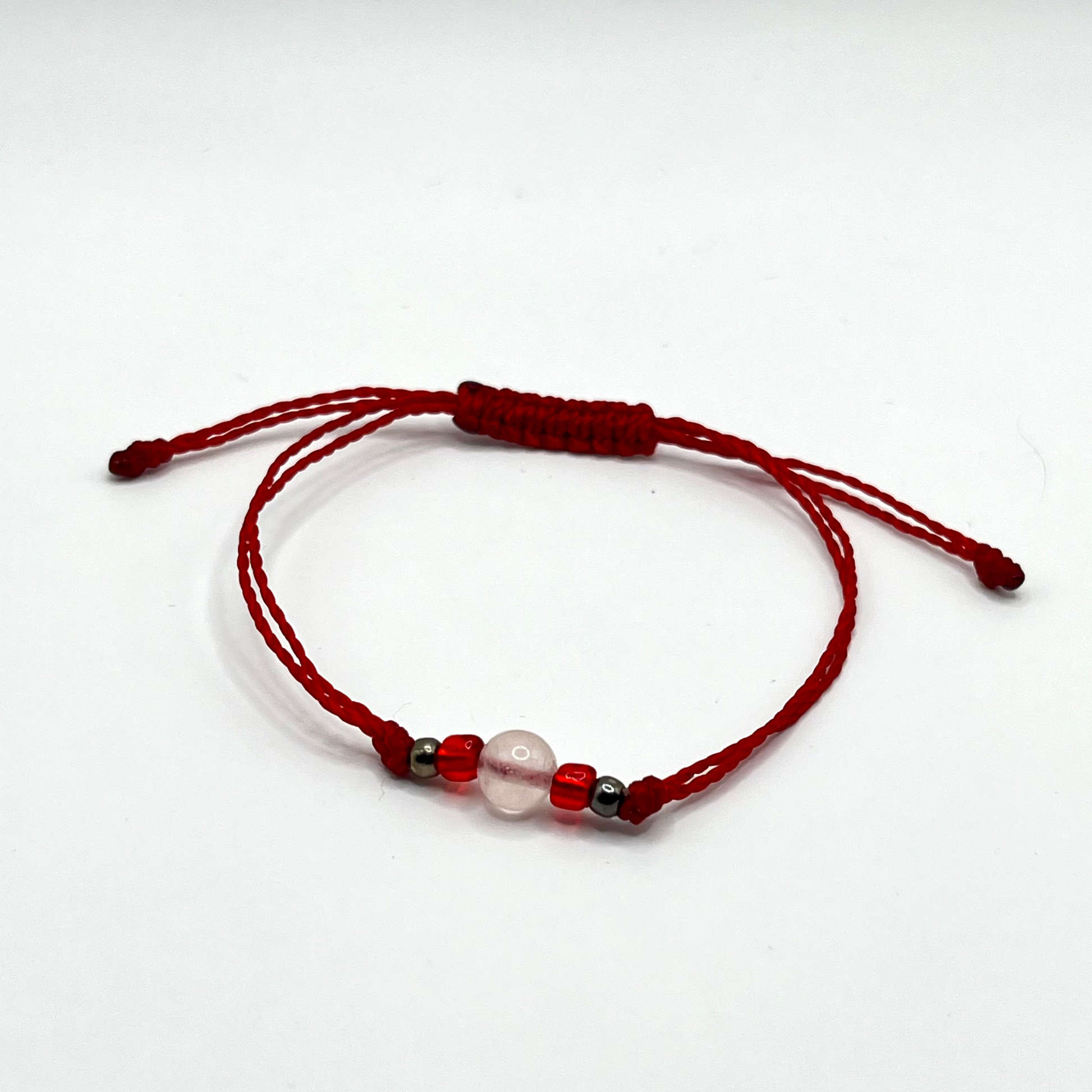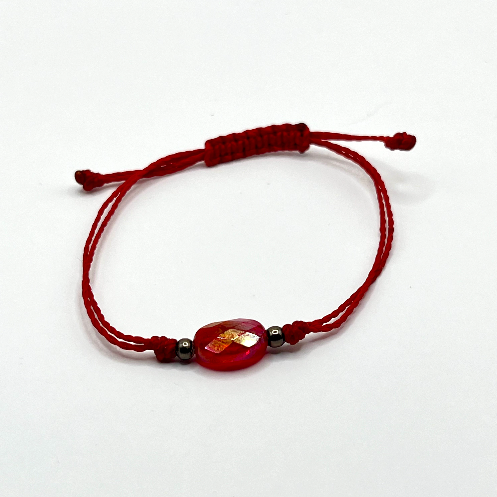 Et rødt og vakkert armbånd med en stor rød sten eller en hvit bergkrystall. Mange kulturer over hele verden mener at det røde armbåndet bringer både hell, lykke og beskyttelse.