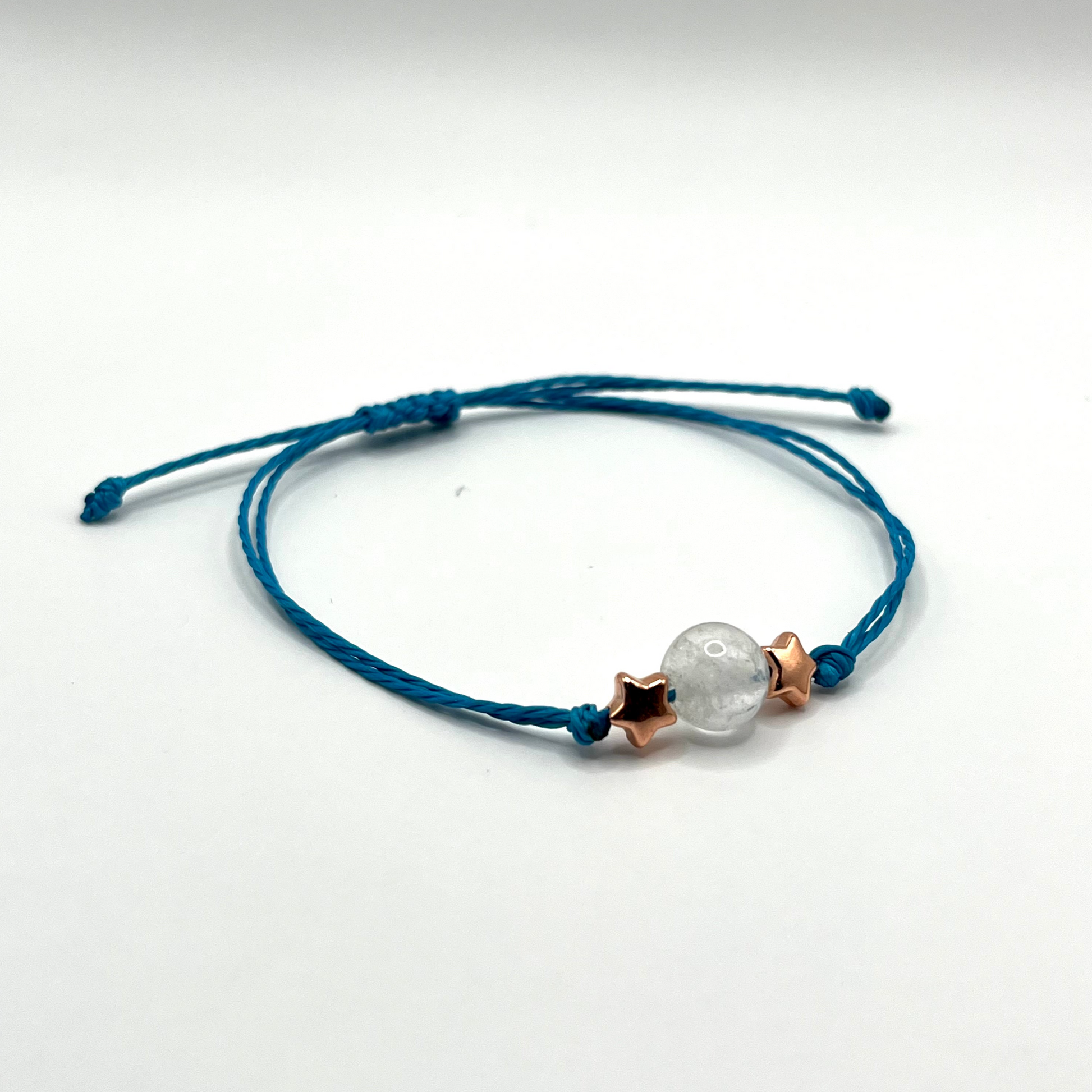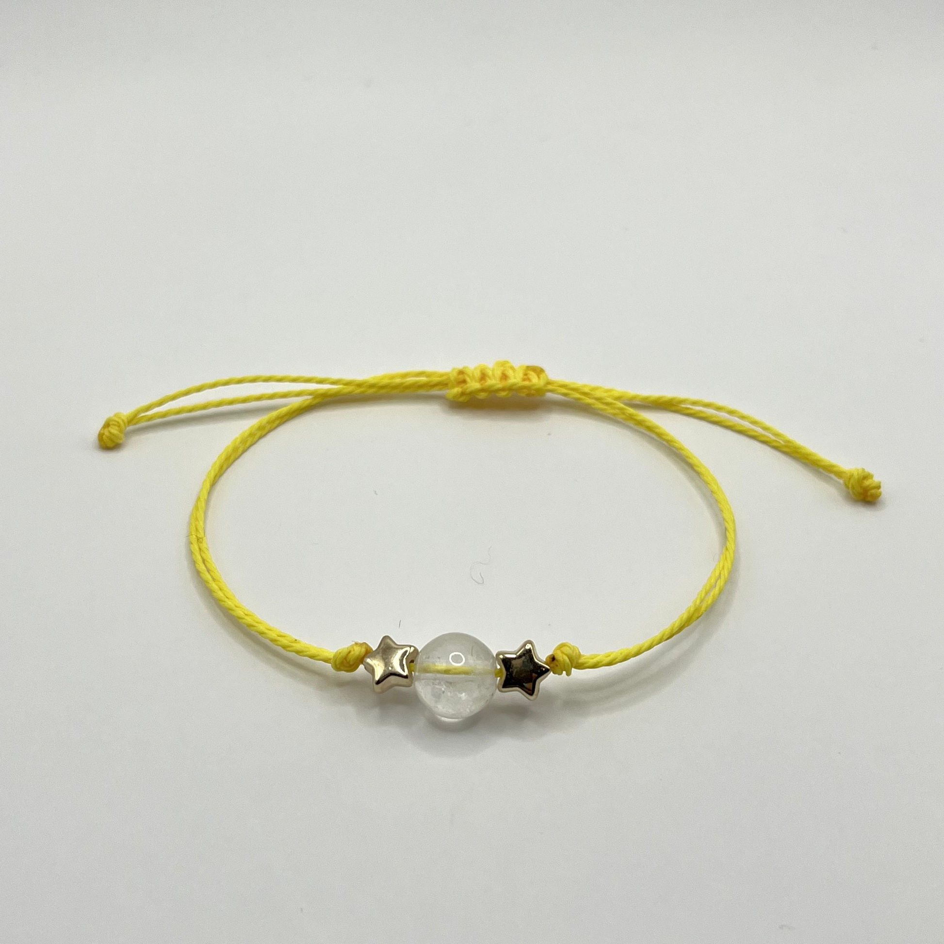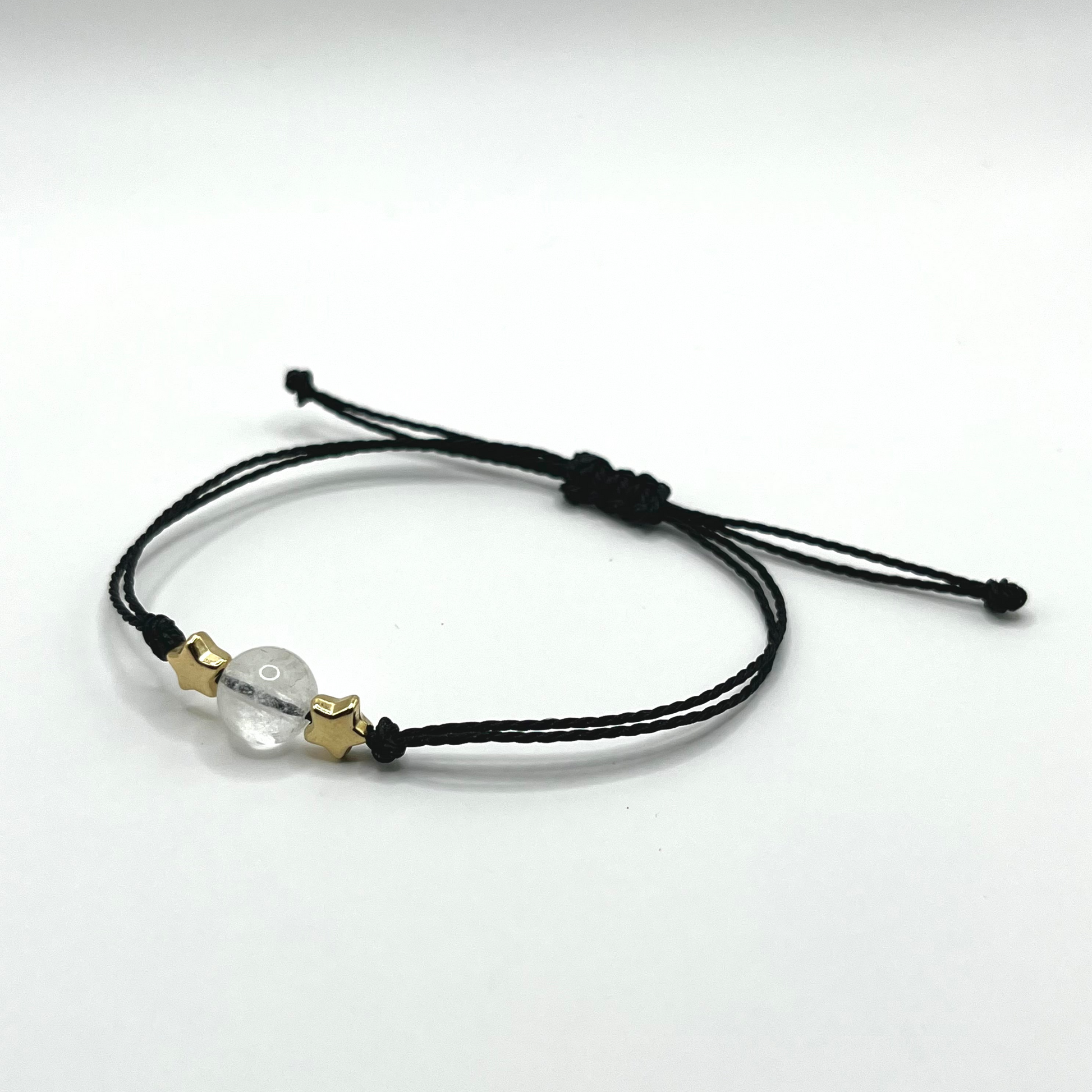 Estrellita er et enkelt og stilfullt armbånd med to små stjerner og en flott perle i bergkrystall. Bergkrystallen er en kraftfull sten som kan bringe klarhet i både tanker og kommunikasjon.